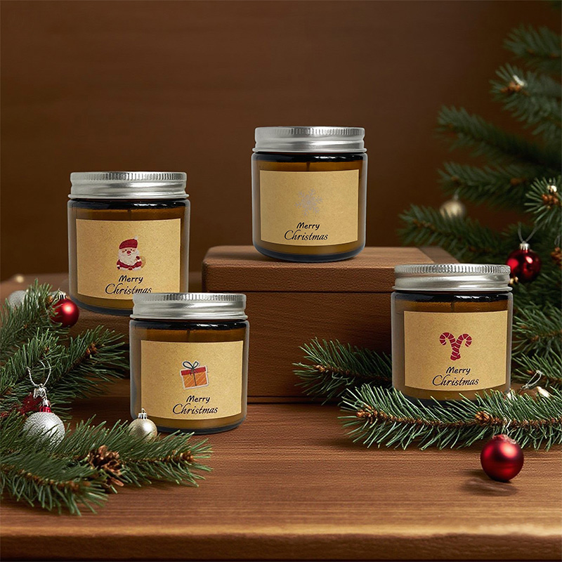 Brown Christmas Kraft Paper Label Scented Candle Gift Box Natural Soy Wax