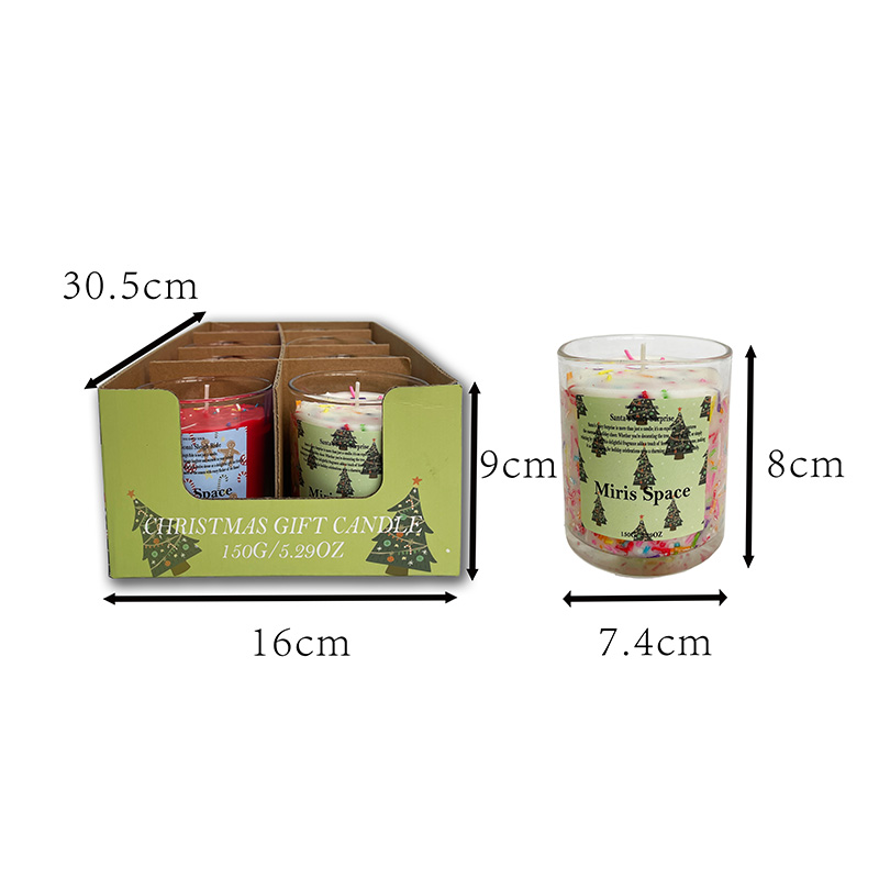 This Christmas candy-colored soy wax scented candle set is made from natural soy wax, which is eco-friendly and healthy. It produces almost no black smoke when burning, ensuring safety and no unpleasant odors. The set includes a variety of colorful candles, with their exteriors featuring Christmas-themed label designs that are full of festive atmosphere. Each candle has a net weight of 161 grams and measures 7.4 cm in diameter and 8 cm in height, housed in a transparent glass cup for easy placement and decoration.