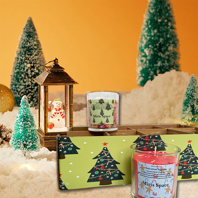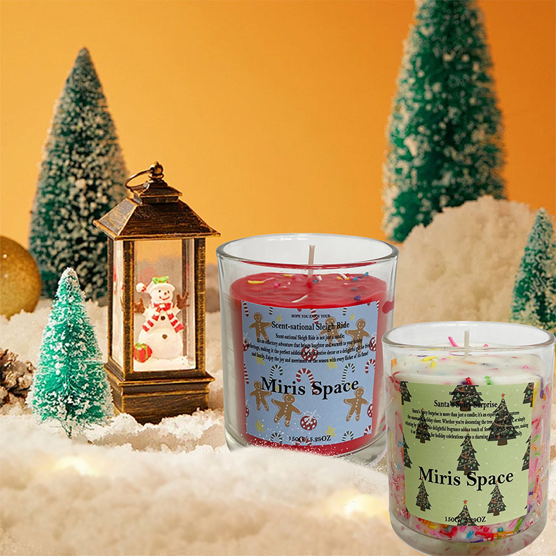 Christmas Frosted Colorful Label Cute Scented Candle Set Festive Ambiance Soy Wax