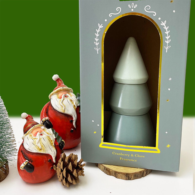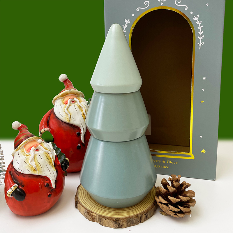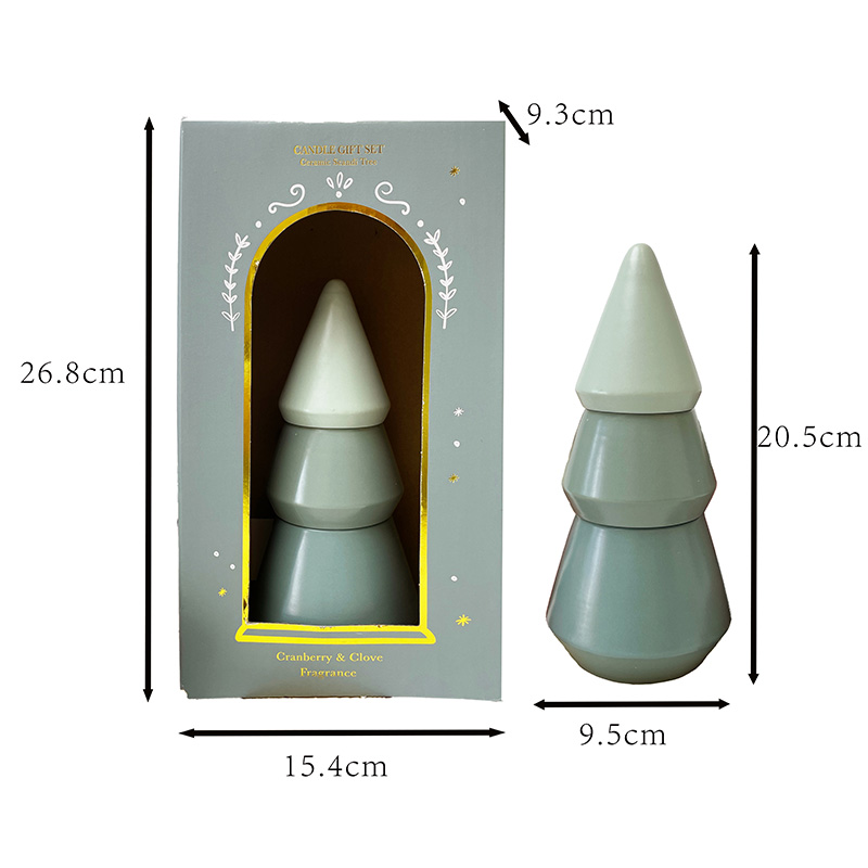 This detachable creative Christmas tree scented candle is made from 100% natural soy wax, which is eco-friendly and healthy. It produces almost no black smoke when burning, ensuring safety and no unpleasant odors. Designed in the shape of a Christmas tree, the candle can be split into multiple parts, each of which can be burned independently—full of creativity and fun. With a net weight of 658 grams, it measures 9.5 cm in diameter and 20.5 cm in height, and comes in an exquisite and elegant ceramic cup packaging.