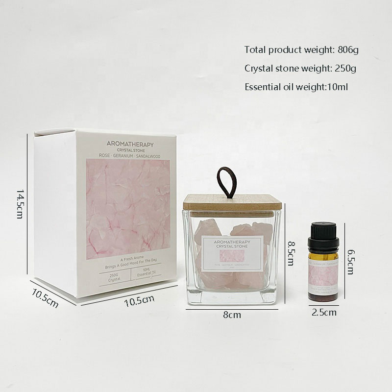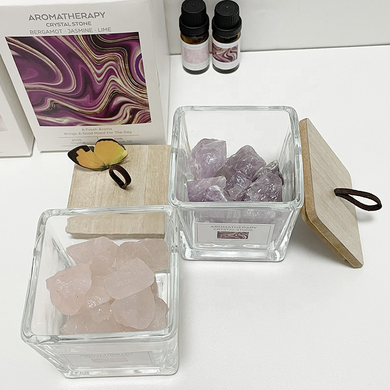 This aromatherapy decor piece features natural crystals or volcanic stones, which have a fine texture and strong oil absorption capacity, enabling them to emit essential oil fragrance for a long time. It comes with an exquisite wooden lid, measuring 8 cm in diameter and 8.5 cm in height. With a minimalist and premium design, it fits various home styles.