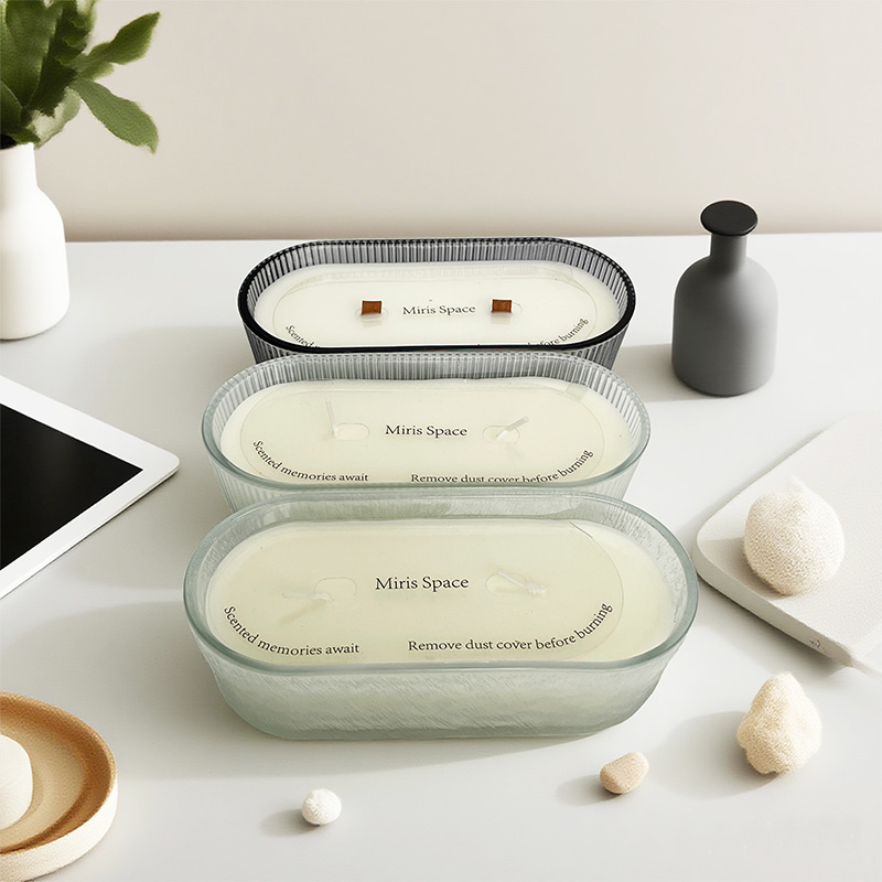 This scented candle features a boat-shaped design and simple vertical stripe details, focusing on the inherent beauty of the product's form. Filled with 100% natural soy wax, it is eco-friendly and healthy. The candle has a net weight of 243 grams, with dimensions of 17 cm in length and 5 cm in height. Housed in a boat-shaped glass vessel, its slender shape paired with vertical stripes creates a strong sense of line. With a modern and minimalist style, it serves as a home decor piece with distinct sculptural appeal.