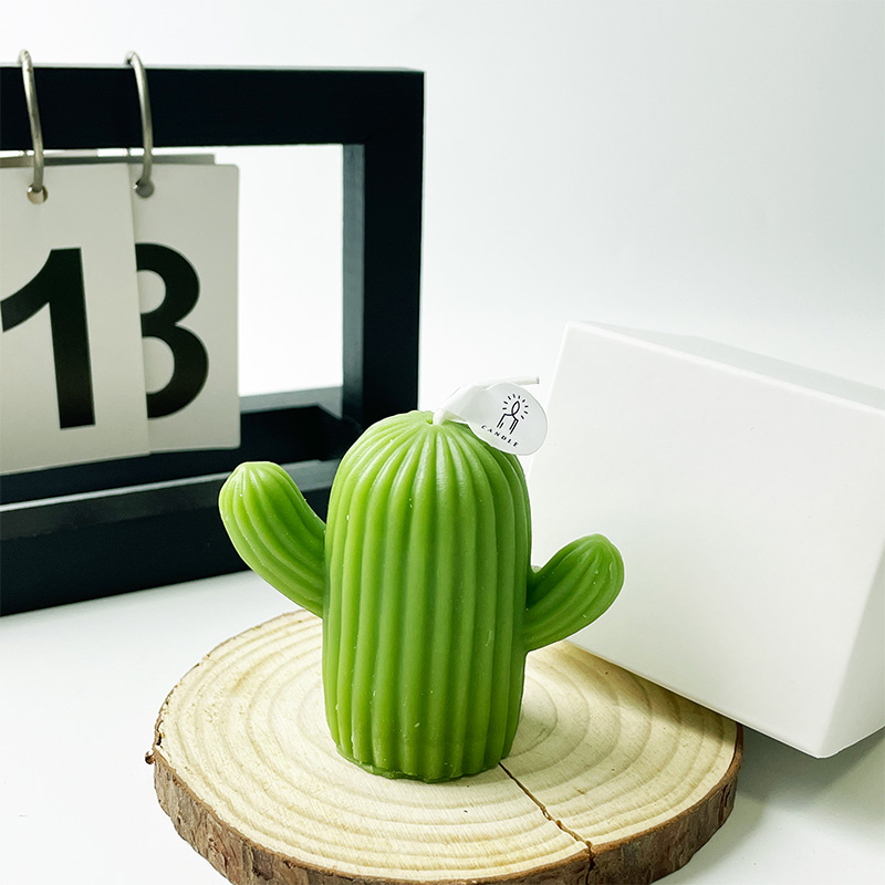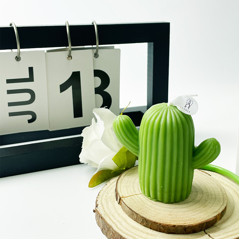 This scented candle takes the cute and playful cactus shape as its design inspiration. Made of natural soy wax for wholesale, it adds a touch of fun-filled desert greenery to modern spaces. With a net weight of 53 grams, it features a vivid and lovely shape—approximately 6 cm in diameter and 6.5 cm in height. It perfectly replicates the form and texture of a cactus, looking incredibly lifelike and full of comforting charm. Even when unlit, it serves as a bright and eye-catching highlight on the table.