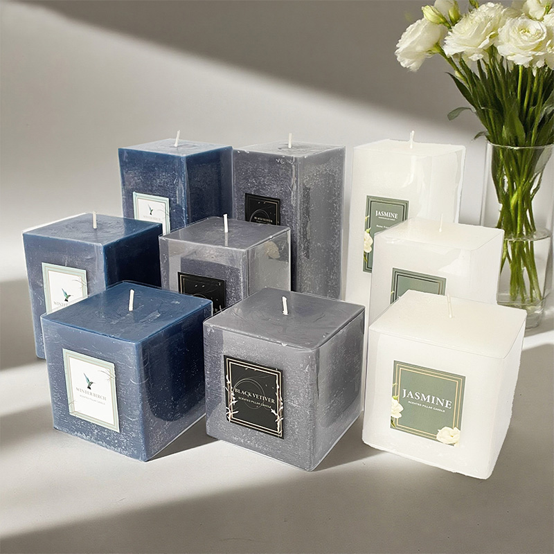 Multi-Size Square Pillar Scented Candle Soy Wax Custom Logo