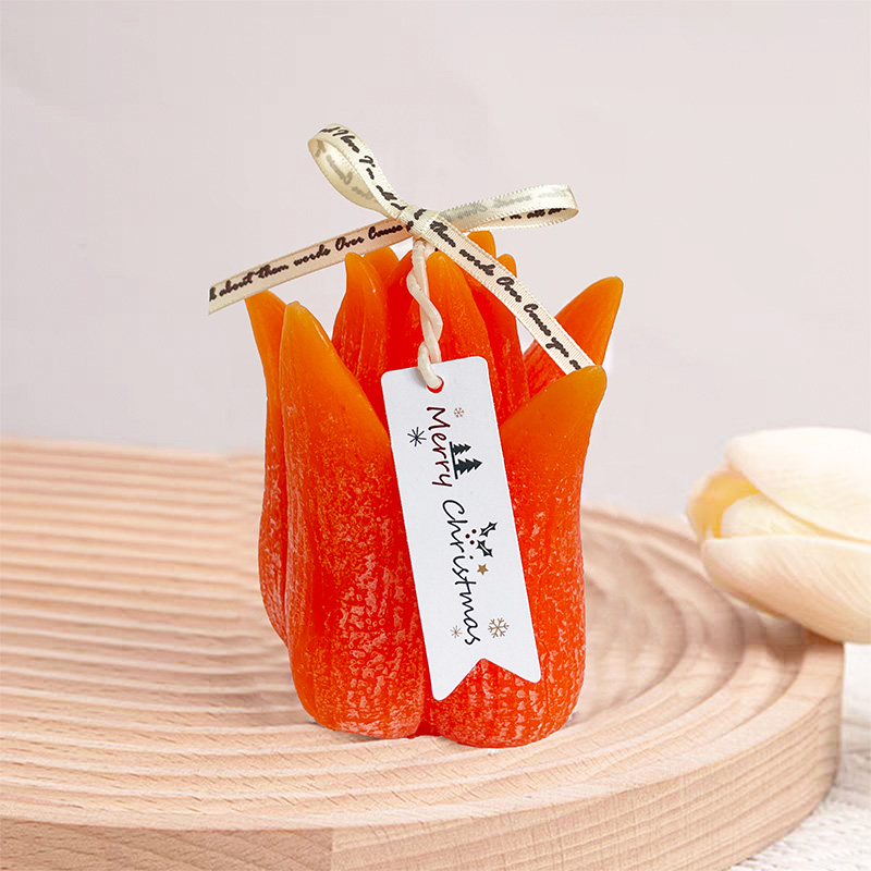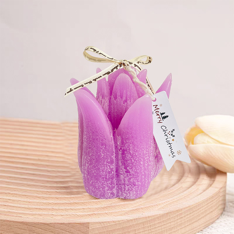 This scented candle draws inspiration from the elegant shape of tulip flowers, integrating the beauty of nature into a fragrance product. Made with natural soy wax and a cotton wick, it is an excellent wholesale item that combines ornamental value with practicality. The candle has a net weight of 265 grams, with a lifelike shape—approximately 8 cm in diameter and 11 cm in height. It perfectly replicates the graceful form of a tulip in bud, serving as an exquisite artistic decoration even when unlit.