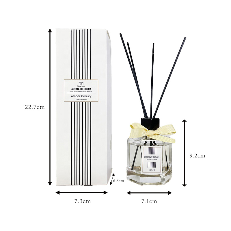 The fragrance is mainly fresh floral and herbal notes: the top notes are lemon and bergamot, the middle notes are jasmine and lily, and the base notes are cedarwood and musk. With rich layers, it can effectively purify the air and soothe the mood, making it suitable for various indoor environments such as bedrooms, living rooms, and studies. The reed sticks are made of natural fibers, which have strong oil absorption capacity and ensure even and long-lasting fragrance diffusion. No ignition is required, making it safe and eco-friendly.