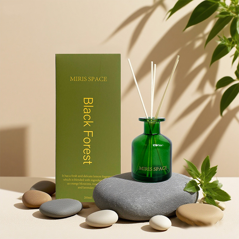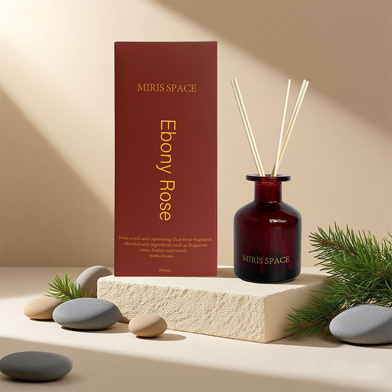 The fragrance features a composite woody note, blending sandalwood, amber, and cedarwood to create a calm and soothing atmosphere. Natural reed sticks ensure even fragrance diffusion, and no open flame is required, making it safe to use.
