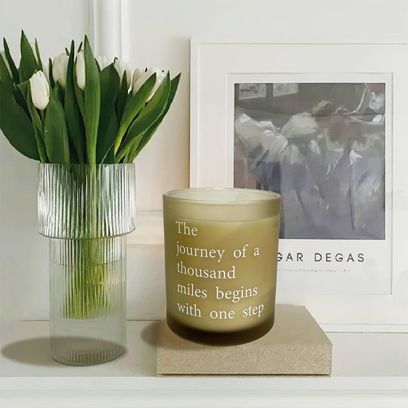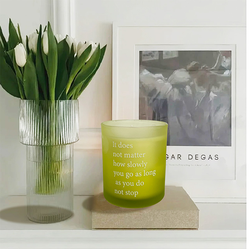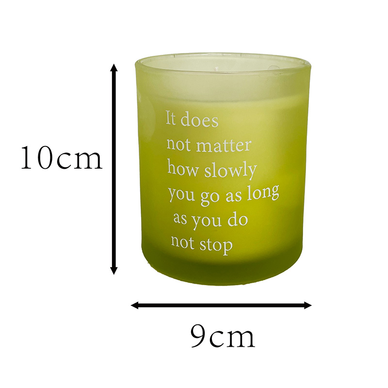 This scented candle cleverly combines the hazy texture of colored frosted glass with stylish English prints. Filled with natural soy wax inside, it emits a soft yet long-lasting glow and fragrance. The candle has a net weight of 260 grams and measures 9 cm in diameter and 10 cm in height. The frosted craftsmanship delivers a soft touch and a premium texture, while the English font adds a hint of international flair and fashion sense.