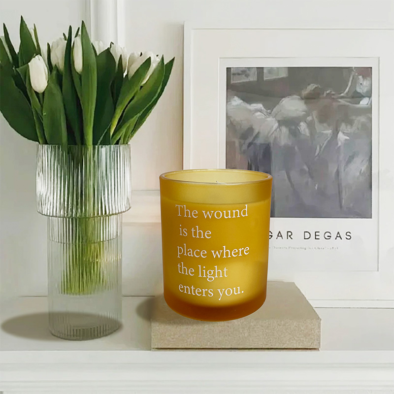 Colored Frosted English Print Scented Candle Customizable Natural Soy Wax