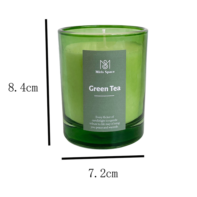 This scented candle is handcrafted from high-quality natural Glycine max wax, environmentally friendly and pollution-free, producing almost no black smoke when burning, ensuring safety and health. The candle has a net weight of 280 grams and comes in a colored glass container measuring 7.2 cm in diameter and 8.4 cm in height, featuring a simple yet stylish design with a fresh and elegant label, perfectly suited for modern home decor.