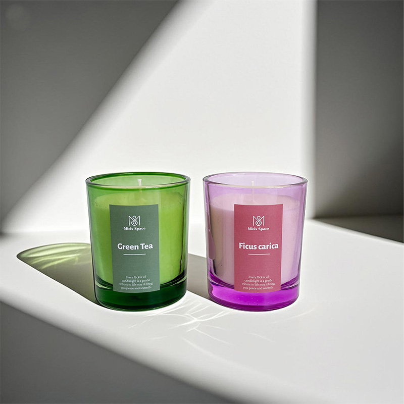 Colorful Glass Jar Natural Scented Candle with Simple Label – Custom Logo Available