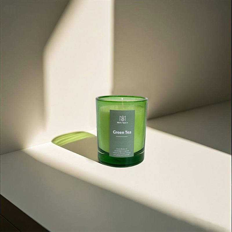 Natural Green Glass Jar Soy Wax Scented Candle – Custom Logo Available