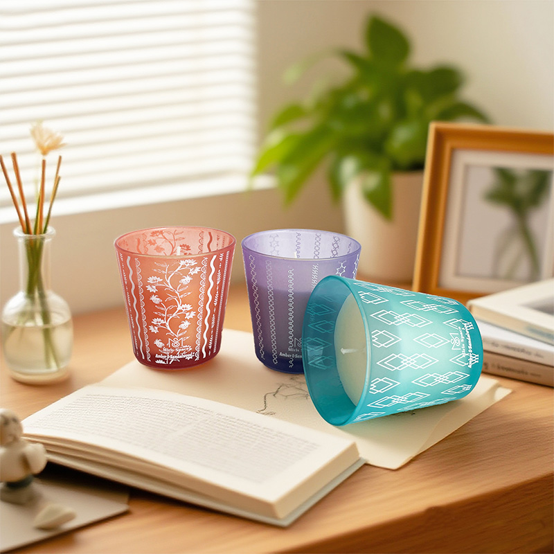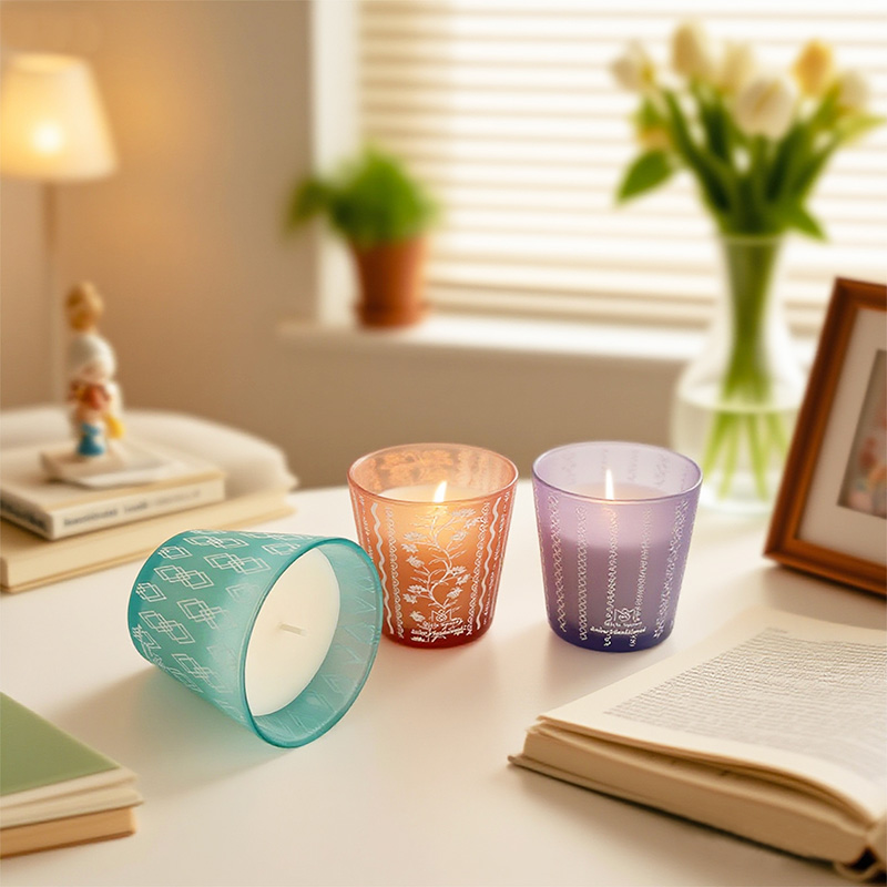 Colorful Frosted Glass Jar Simple Soy Wax Scented Candle – Custom Logo