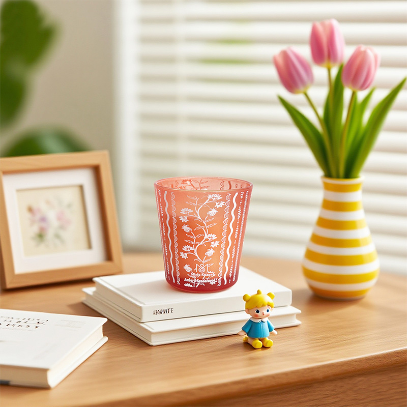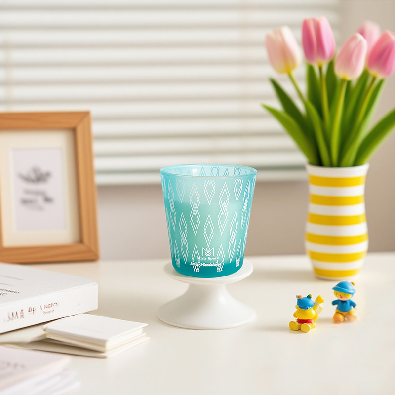 This scented candle is a gift filled with girlish charm and romance. The glass jar features an exquisite colored printing craft, and it contains natural soy wax that releases fragrance for a long time—every detail from the outside to the inside is carefully designed. The candle has a net weight of 112 grams, with dimensions of 7.5 cm in top diameter, 5.5 cm in bottom diameter, and 7.5 cm in height. The printed patterns are romantic and delicate with soft colors, making it perfect for decorating tabletops.