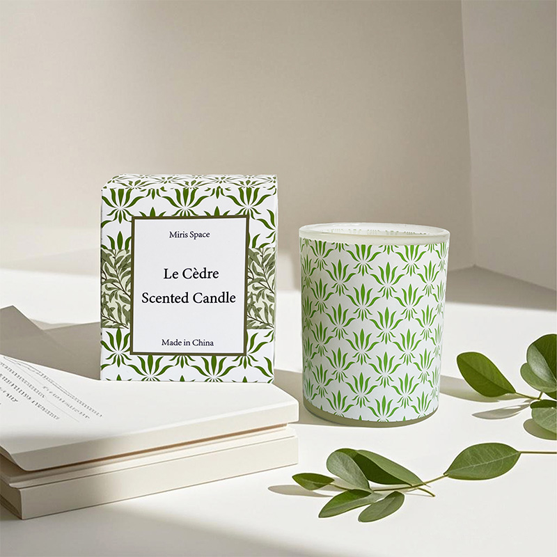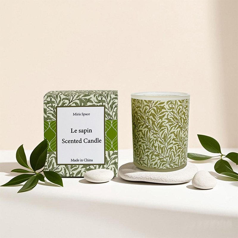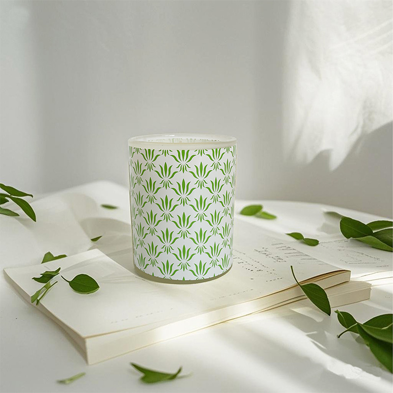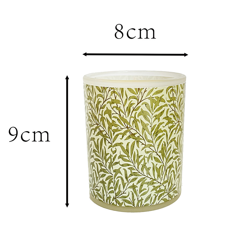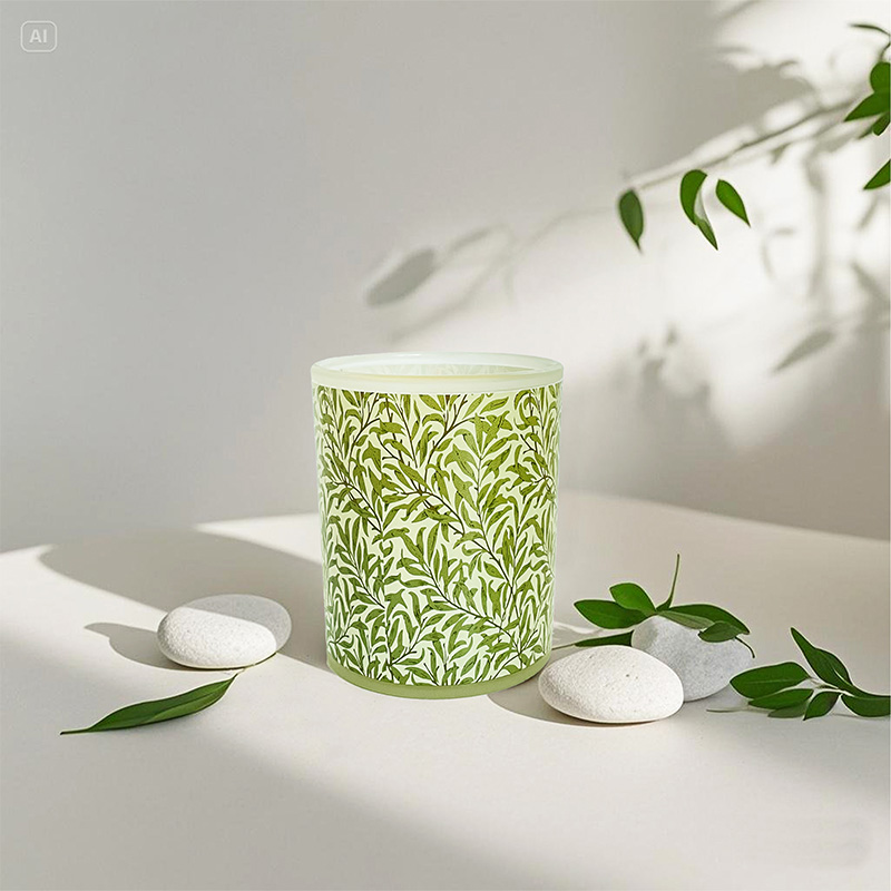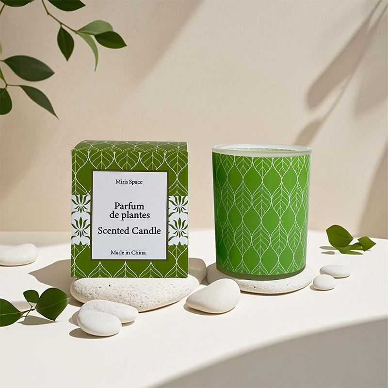 Fresh Green Leaf Patterned Glass Cup Soy Wax Scented Candle – Custom Logo