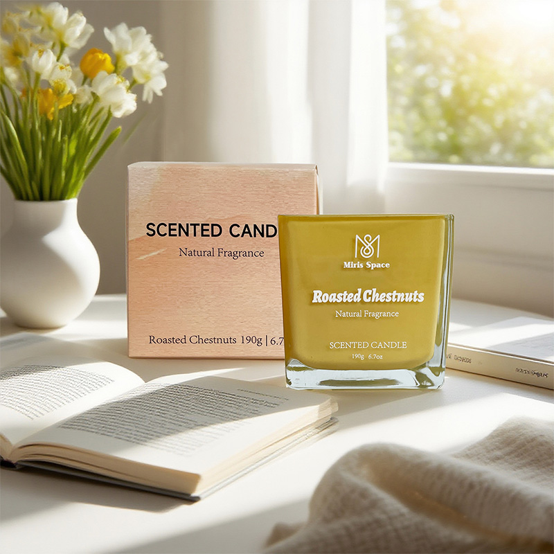 This scented candle features a trendy square design and eye-catching colored printed text, perfectly combining modern aesthetics with personalized expression. Made from natural soy wax, it is eco-friendly and practical. With a net weight of 170 grams, the candle comes in an 8x8 cm square glass jar—boasting neat lines and a contemporary shape. The colorful printed text is clear and prominent, delivering strong visual impact and high brand recognition.