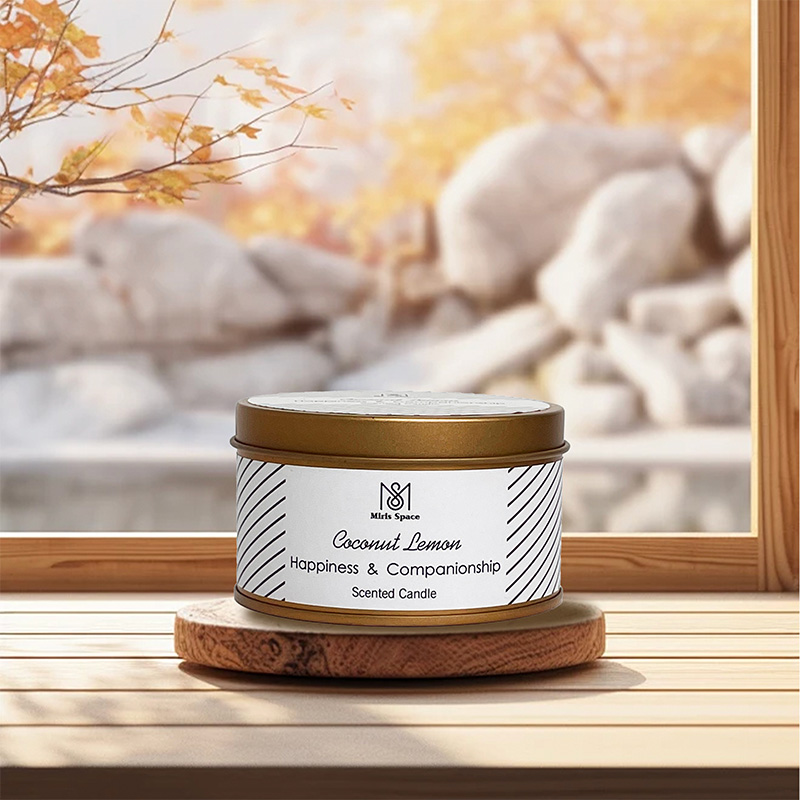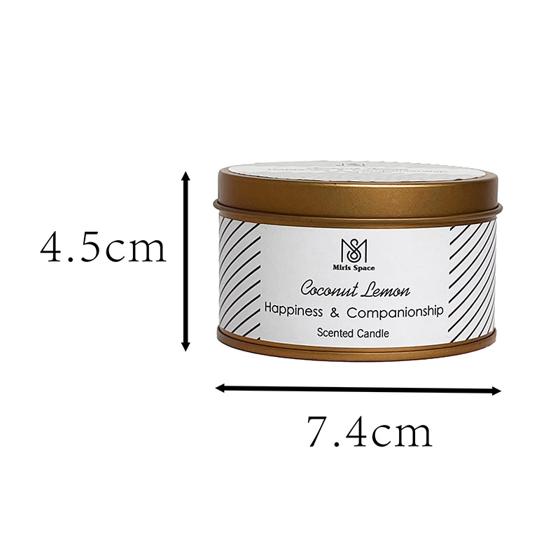 Centered on the design of sleek modern geometric lines and a shiny gold tin can, this scented candle is filled with natural soy wax, creating a light-luxury and fashionable fragrance experience. The candle has a net weight of 138 grams and is contained in a tin can measuring 7.4 cm in diameter and 4.5 cm in height. The geometric lines on the can body outline a neat silhouette, while the gold material adds a touch of luxury and vitality—making it highly suitable for embellishing modern-style homes or commercial spaces.
