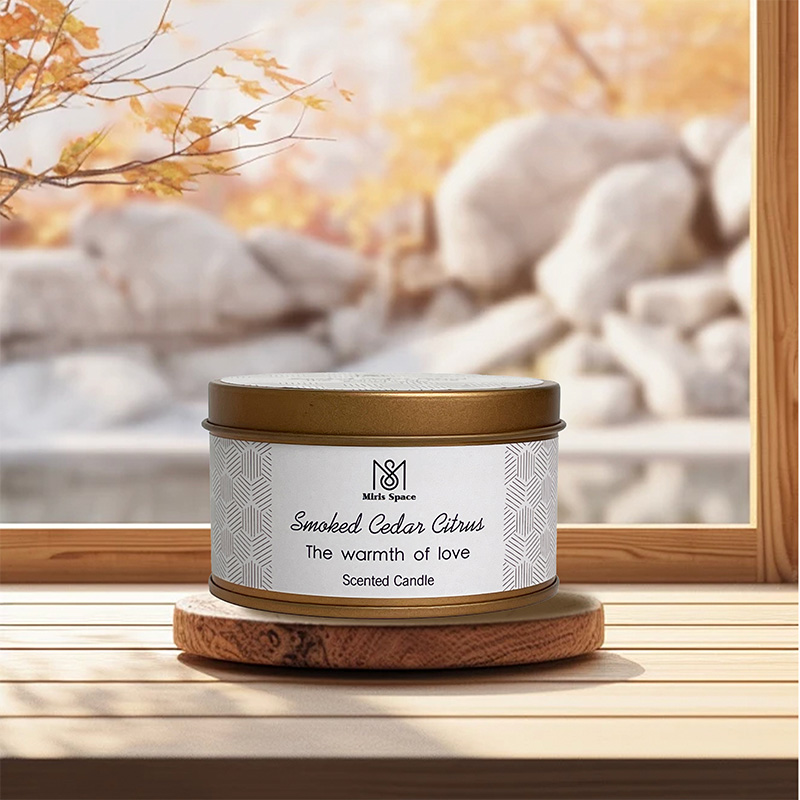 Premium Woody Scent Tin Scented Candle Soy Wax