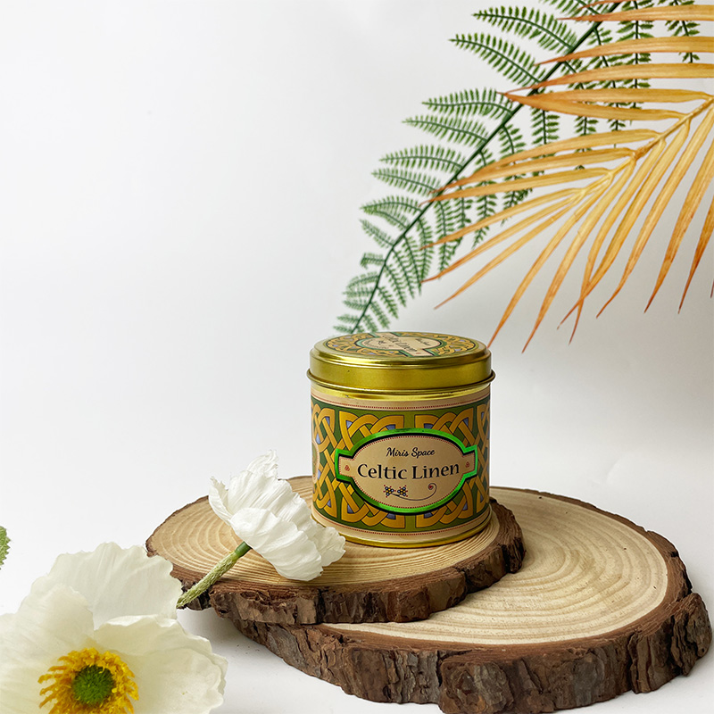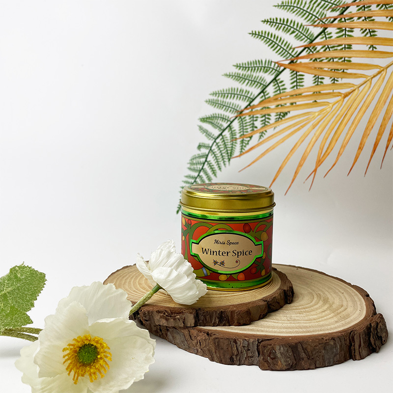 This scented candle catches the eye with its unique niche patterns and gold tin can. It mainly targets the wholesale market and customization services, and is made of high-quality soy wax. The candle has a net weight of 150 grams and is packed in a tin can with a diameter of 7 cm and a height of 6 cm. The can body is covered with exquisite and unconventional unique patterns, which look even more distinctive and artistic against the gold background.