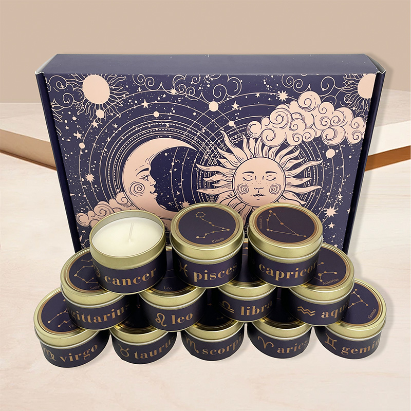 Zodiac Healing Tin Scented Candle Set Gift Box Natural Soy Wax